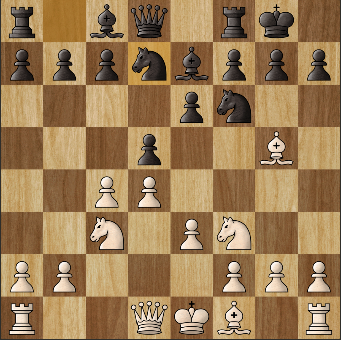 Questa posizione alla mossa 15 andrebbe confrontata con la posizione alternativa derivante da 12…b6!? 13. d5 ecc. decisamente meno svantaggiosa per il Nero (Stockfish +0,1).